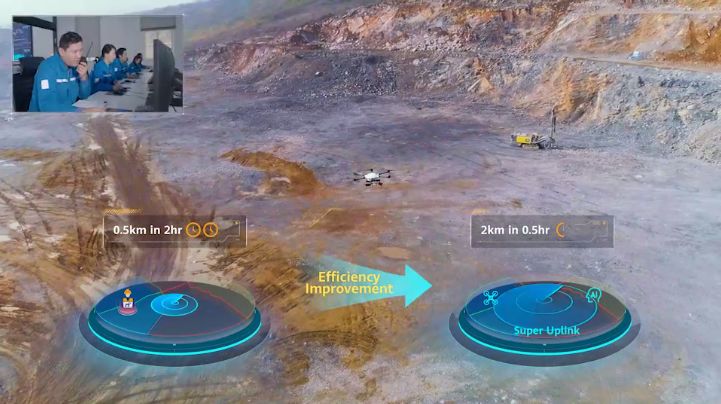 2019年,中国电信股份有限公司芜湖分公司携手华为在海螺集团提供5G“超级上行”网络服务。今年3月,5G超级上行技术在海螺集团实现了全球首次商用部署。以5G﹢无人机矿区爆破预警为例,基于5G“超级上行”网络服务,必一体育·(中国)官方网站智能赛鹰无人机在矿区进行高空巡查警戒,实时将4K高清视频回传,结合AI保障实时视频清晰度,精准识别人员、矿车、挖掘机等相关元素。